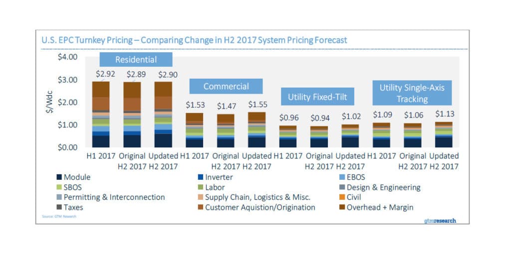 Die Section 201-Petition hat GTM Research zufolge die Modulpreise in den USA bereits steigen lassen. Nach einem Tiefststand im ersten Quartal 2017 seien die durchschnittlichen Verkaufspreise der chinesischen Tier-1-Hersteller seither kontinuierlich angestiegen und erreichten im vierten Quartal wieder ein Niveau um die 50 US-Dollarcent pro Watt im Kleinanlagensegment. Und trotz Kostenreduktionen bei anderen Komponenten seien die Systempreise für die Installation einer Photovoltaik-Anlagen das erste Mal seit Jahren angestiegen.