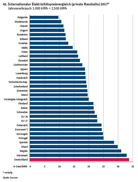 Dass zur Behauptung die deutsche Industrie zahle ebenfalls den teuersten Strom in Europa die Gruppe der Mittelständler zwischen 500.000 und 2 Millionen Kilowattstunden Verbrauch ausgewählt wurde, passt ebenfalls ins Bild. Hätte man mal die Großindustrie (>100 Gigawattstunden) herangezogen, die sowohl von EEG als auch von Netzentgelten weitestgehend befreit ist, wäre man zu einem völlig anderen Bild gelangt.