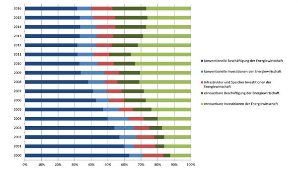 Zwischen 2000 und 2010 stiegen der Studie zufolge die Investitionen in erneuerbare Energien kontinuierlich – einzige Ausnahme war das Jahr 2007. „Als wesentliche Treiber des starken Anstiegs der Investitionen zwischen 2007 und 2010 ist die Photovoltaik hervorzuheben, deren Investitionsvolumen sich beinahe vervierfachte“, heißt es in der Studie. Fast 28 Milliarden Euro seien 2010 in erneuerbare Energien investiert worden, rund 20 Milliarden davon in die Photovoltaik. Der Einbruch bei den Erneuerbaren-Investitionen folgte zwischen 2011 und 2013, den Autoren zufolge liegt auch hier der Grund vor allem bei der Photovoltaik. 2013 wurde demnach nur noch knapp ein Drittel der installierten Leistung des Vorjahres zugebaut.