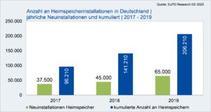 Insgesamt sind hierzulande bis zum Jahresende 2019 mehr als 200.000 Photovoltaik-Heimspeicher verbaut worden – eine Verdoppelung binnen zwei Jahren. Die Nachfrage stieg dabei im vergangenen Jahr weiter kräftig an.