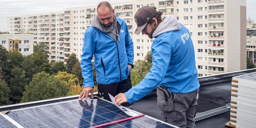 2019 haben die Berliner Stadtwerke und die Wohnungsbaugenossenschaft Neues Berlin ihr erstes gemeinsames Mieterstromprojekt realisiert. Dafür wurden in der Wohnanlage Malchower Aue im Bezirk Hohenschönhausen auf insgesamt vier Gebäuden fünf Photovoltaik-Anlagen mit zusammen 224 Kilowatt Leistung installiert. In diesem Jahr haben die Berliner Stadtwerke eine bereits existierende Solaranlage auf dem Neues-Berlin-Gebäude Degnerbogen zu einer intelligenten Mieterstromanlage umgerüstet. Mit einem weiteren Mieterstromprojekt in Hohenschönhausen erweitern die beiden Unternehmen ihre Kooperation jetzt erneut: In der Wohnanlage Mühlengrund sollen Photovoltaik-Anlagen mit insgesamt 500 Kilowatt Leistung entstehen, die sich auf 23 sechsgeschossige Gebäude verteilen.