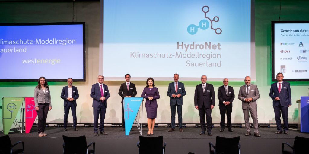 „Mit dem Projekt Klimaschutz-Modellregion Sauerland startet heute der Aufbau der Wasserstoffwirtschaft auch im Sauerland“, erklärte Nordrhein-Westfalens Ministerpräsident Armin Laschet (CDU) in einer Videobotschaft. „Das ist eine gute Nachricht und ein wichtiges Signal für den Standort und für das Sauerland. Eine Region, in der viele ,Hidden Champions‘, familiengeführte Unternehmen und Weltmarktführer, zuhause sind.“ Auch weitere Vertreter betonten die Bedeutung des Wasserstoffs für die Klimaziele bis 2045. „Die Klimaschutz-Modellregion Sauerland wird daher den Beleg dafür liefern, dass die verschärften Klimaziele tatsächlich erreichbar sind. Hier in Arnsberg wird sich zeigen, dass klimapolitischer Fortschritt dort stattfindet, wo die Dinge praktisch umgesetzt werden“, erklärte etwa Eon-Vorstandschef Leonhard Birnbaum. Katharina Reiche, Vorstandschefin von Westenergie, ergänzte: „Der Hochlauf der Wasserstoffwirtschaft gelingt uns nur dann, wenn wir mit Partnern entlang der gesamten Wertschöpfungskette zusammenarbeiten und die vorhandene Gas-Infrastruktur nutzen. Hier in Arnsberg sind die Bedingungen für eine Modellregion optimal, weil wir eine geeignete Erdgasleitung betreiben, die zur Hauptschlagader des Projektes wird.“