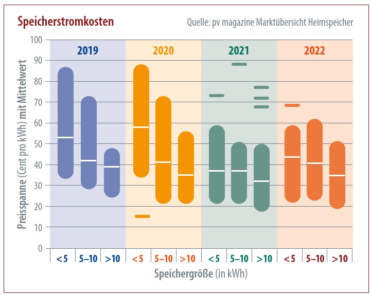 Einige Anbieter sind in diesem Jahr erstmalig gelistet, darunter Goodwe, Fox ESS und ZZ Robotics, ein Händler für die italienische Marke Azzurro. Zu den Produktneuheiten zählen vier Smile-Batteriespeicher von Alpha ESS, die im Dezember auf den Markt gekommen sind, der „Pacadu Compact“ von ASD Automatic Storage Device in vier Größen mit Release im Februar und zwei neue Versionen des „AXIstorage Li“ von Axitec aus dem April. SMA hat nach langer Zeit mit den neuen „Sunny Tripower Smart Energy“ wieder Hybrid-Wechselrichter im Angebot. Man erinnere sich – eines der ersten Hybridsysteme kam im Jahr 2013 von den Pionieren aus Hessen. Die Tripower-Modelle gibt es mit AC-Nennleistungen zwischen fünf und zehn Kilowatt, sie sind notstromfähig und auch im Außenbereich aufstellbar. Wir haben sie exemplarisch mit BYD-Batterien kombiniert. Speicherstromkosten dafür finden Sie am Ende der Tabelle im Magazin (Premium Content). Diese können je nach Bezugsquelle variieren.