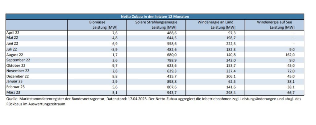 Die Bundesnetzagentur hat damit abermals die Zahlen für die Vormonate nach oben korrigiert. Bei der letzten Veröffentlichung gab sie den Photovoltaik-Zubau für Januar noch mit 874 Megawatt und für Februar mit 746 Megawatt an.