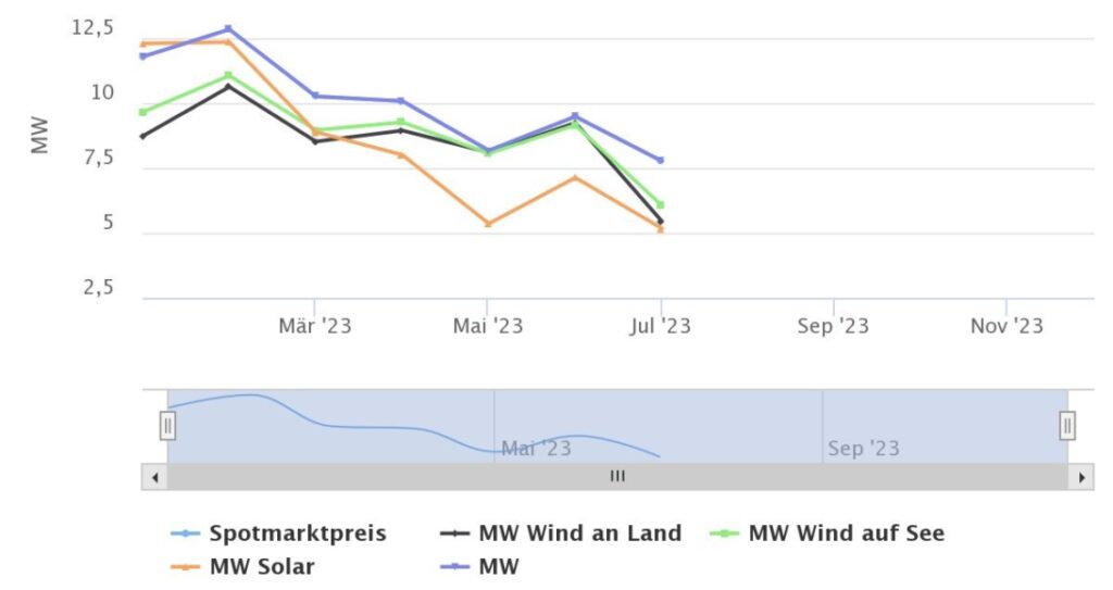 Woraus entnehmen Sie das? Die Grafik stellt den Marktwert (MW) dar und nicht die Stromerzeugung in Megawatt, wenn ich die Beschriftung richtig verstehe.