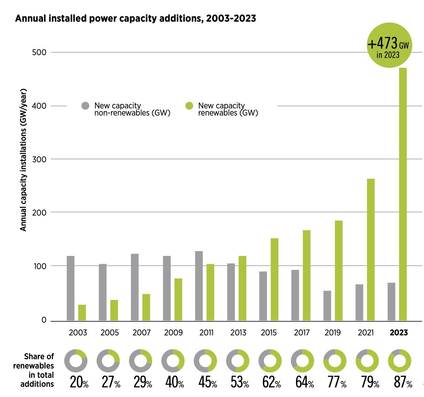 2023 erreichte der weltweite Zubau an erneuerbarer Energieproduktion mit 473 Gigawatt einen neuen Rekord. Das ist das Ergebnis einer Studie, die die Internationale Agentur für Erneuerbare Energien (International Renewable Energy Agency, Irena) anlässlich der Eröffnung des Berlin Energy Transition Dialogue BETD in Berlin am Dienstag veröffentlichte. Dieser tagt zum zehnten Mal im deutschen Außenministerium. Nach Angabe der Veranstalter kommen Teilnehmer und Delegationen aus mehr als 75 Ländern zusammen.