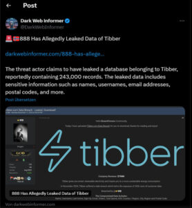 🚨🇳🇴888 Has Allegedly Leaked Data of Tibberhttps://t.co/jehBeBwPkL