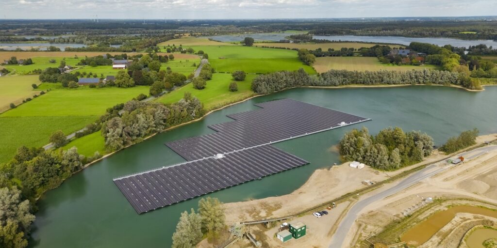 In Nordrhein-Westfalen sind den Angaben zufolge derzeit sechs Floating-PV-Anlagen in Betrieb, die größte davon mit 5,6 Megawatt Leistung auf dem Baggersee in Bislich (Foto). Mitte Mai hatte das Land die Wiederaufnahme eines Förderprogramms für Agri- und Floating-Photovoltaik bekanntgegeben. Der jetzt im Bundesrat eingebrachte Antrag werde an die zuständigen Ausschüsse übersandt und könne noch vor der Sommerpause abgestimmt werden.