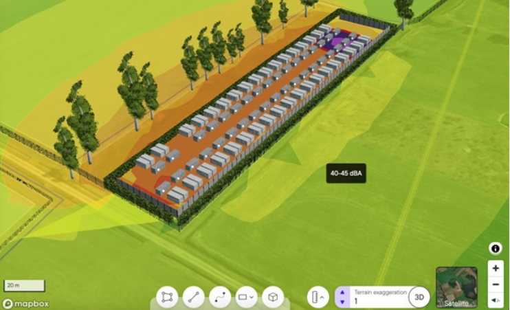 Ein Sprecher des norwegischen Start-up erklärte gegenüber pv magazine, die neue Software ermögliche eine Bewertung der Lärmbelastung für Batteriespeicheranlagen in einem „frühen Stadium der Projektentwicklung“. Sie helfe zu modellieren, „wie sich der von den Anlagen ausgehende Schall an einem Standort verhalten wird, indem Gelände, Bodenabsorption und Hindernisse berücksichtigt werden“.