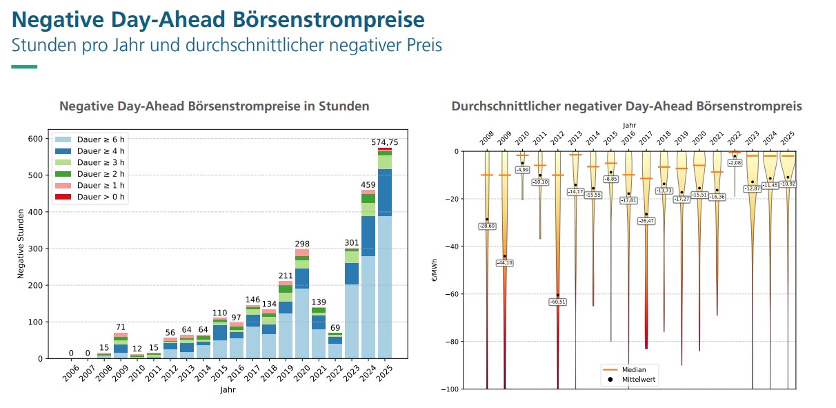 574,75 Stunden mit negativen Börsenstrompreisen 2025
