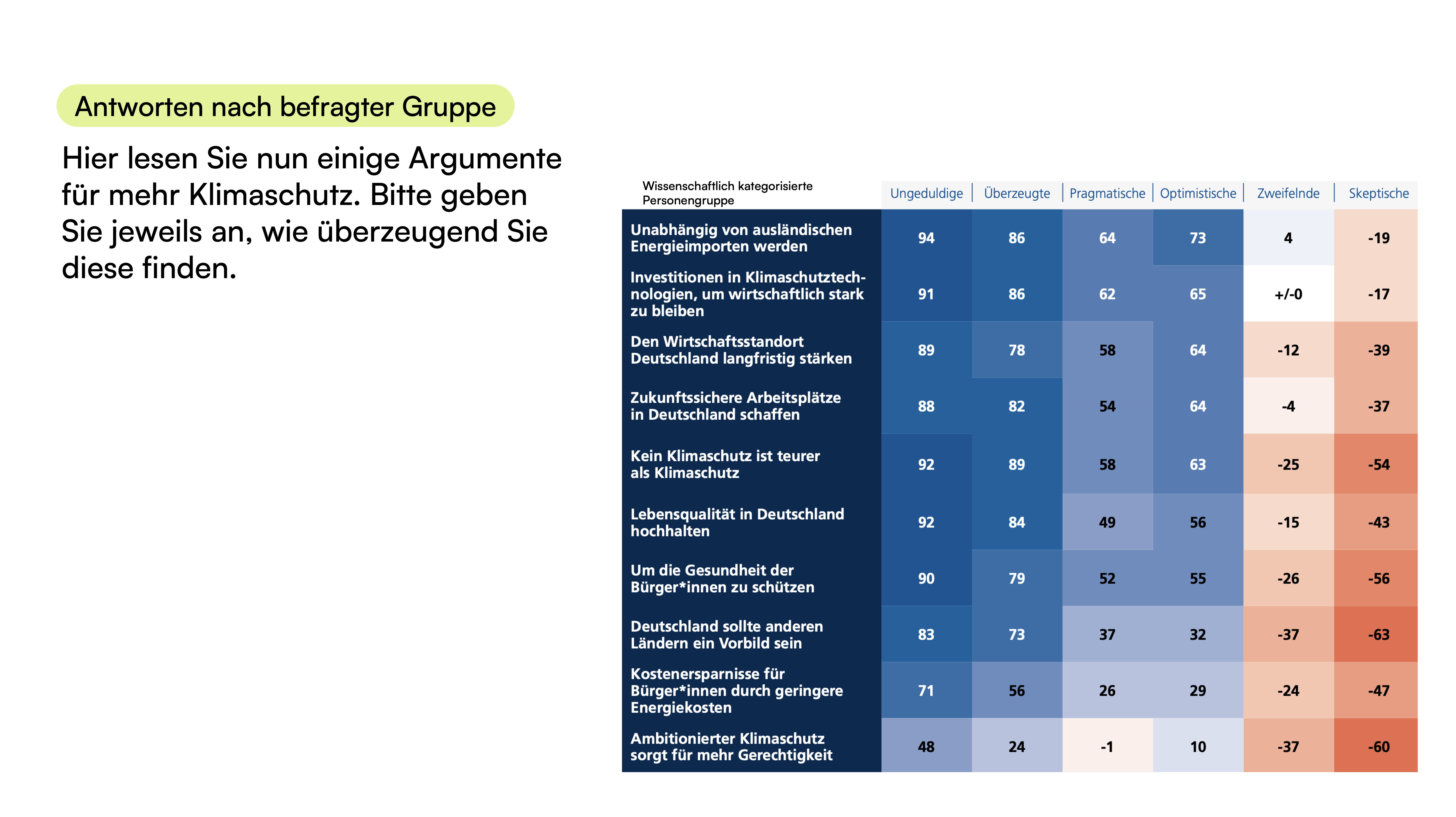 Wir könnten jetzt das tun, was wir in der Energiekrise 2022/2023 zwar vorhatten, dann aber unter anderem wegen der heutigen 3 Prozent-Partei in der Regierung nicht umsetzen konnten: Eine echte Electrifying Germany Offensive vom Zaun brechen. Ja, für die ehemaligen Englisch-Gymnasiallehrer unter euch – stimmt, das Wort ist doppeldeutig. Es bedeutet aufregend, mitreißend und elektrisierend und ist eigentlich nicht technisch gemeint. Genau darum geht es mir aber. Denn während wir in allen Fragen rund um unsere emissionsfreie Zukunft innerhalb der Gesellschaft überhaupt keinen Konsens mehr finden, gibt es Ideologie übergreifend bei der Frage nach mehr Unabhängigkeit die größte Übereinstimmung, wie meine jüngste „Vertrauensfrage Klimaschutz“ zeigt (siehe Grafik).