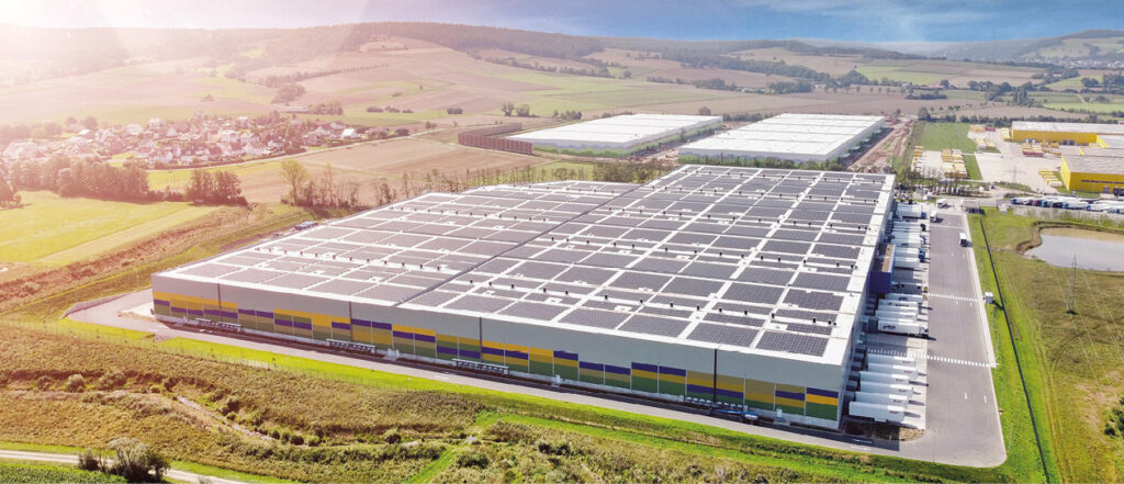 Reichlich Platz – sollte man meinen. Doch ob die gängigen Abstandsregeln für Photovoltaik und Rauchabzugsöffnungen ausreichen, ist nicht unumstritten (im Bild eine Anlage von Wirsol Aufdach auf einem Logistikzentrum der Pfenning-Gruppe in Mecklar).