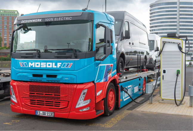 Für ihre 15 elektrischen Lkw hat sich die Mosolf-Gruppe eigene Schnelllader an ihren Standorten aufgebaut.