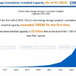 Bis Juni 2025 hat die China Energy Storage Alliance (CNESA) angesichts beschleunigter Implementierungen und sich verändernder Marktbedingungen eine installierte Gesamtspeicherleistung von 164,3 Gigawatt gemeldet. Davon entfallen 101,3 Gigawatt auf neue Energiespeicher, die keine Pumpspeicherkraftwerke sind.