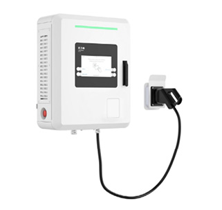 Die Ladestation DC 30 von Eaton ermöglicht Gleichstromladen mit einer Leistung von 30 Kilowatt über einen Stecker des Combined-Charging-Systems (CCS). Das Gerät ist für Zielort-Ladeszenarien wie Flotten- oder Kundenparkplätze konzipiert. Es kann an Wänden oder Decken montiert werden. Eaton empfiehlt es auch für den Einsatz an Orten, an denen zwei Fahrzeuge auf engem Raum gleichzeitig aufgeladen werden sollen.