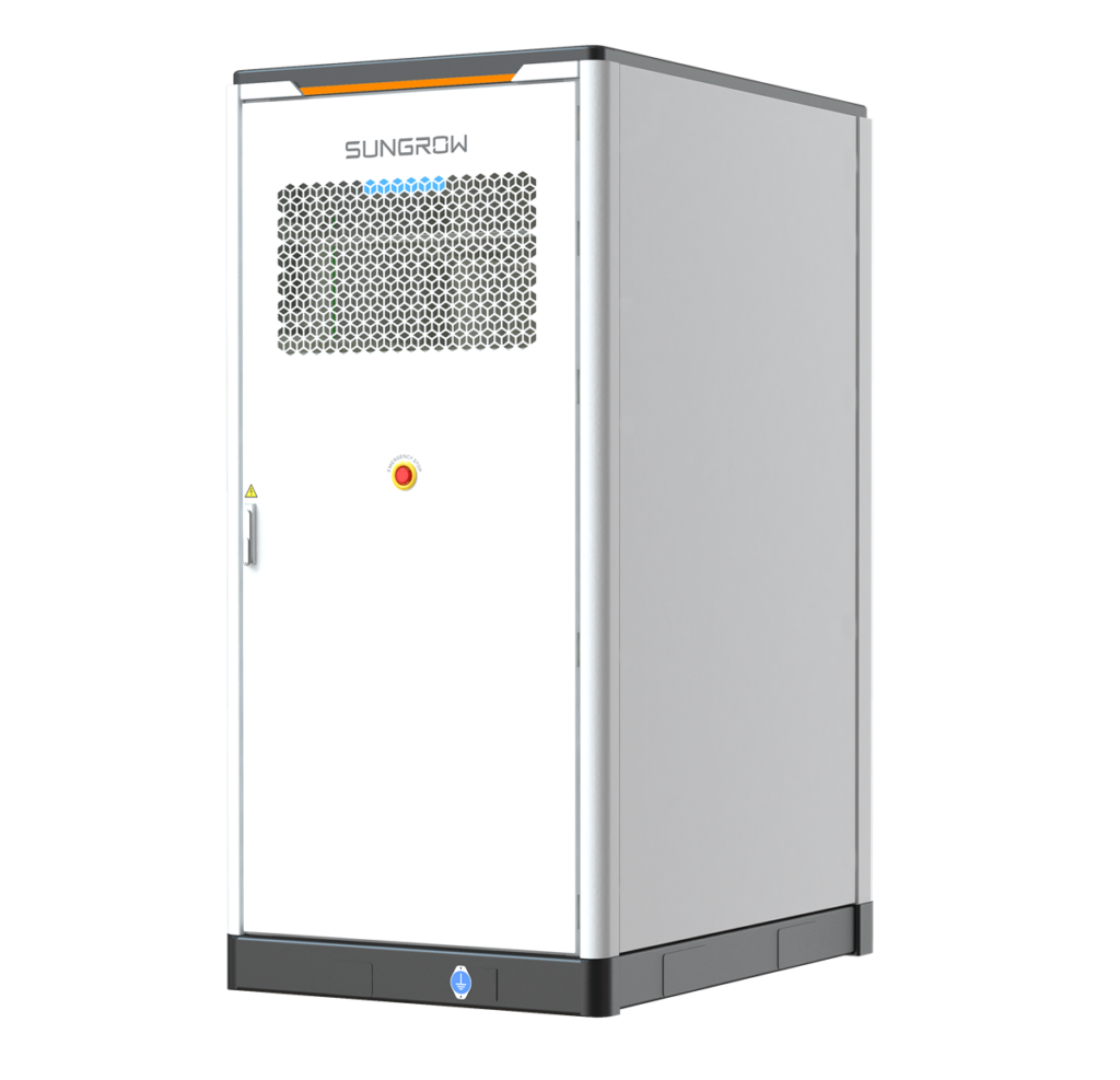 | Weitere Hardware | Industrie-Batteriespeicher für zwei Stunden im Outdoor-Kabinett (ST255kWh-125kW-2h), integrierte Flüssigkeitskühlung mit Heizung, Löschsystem (Wasser, optional mit Aerosol), Batterie-Thermo-Management-Technologie, netzbildend |