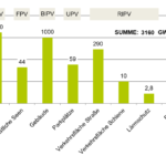 Flächen für diese enorme Steigerung der installierten Photovoltaik-Leistung wären nach einer neuen Studie des Fraunhofer-ISE mehr als genug vorhanden. Wenn alle verfügbaren Flächen für Photovoltaik-Anlagen genutzt würden – also auch Tagebauseen, Fassaden, Straßen oder in Kombination mit der Landwirtschaft – dann sind mehr als 3000 Gigawatt möglich und dazu würden noch viele neue Arbeitsplätze geschaffen.